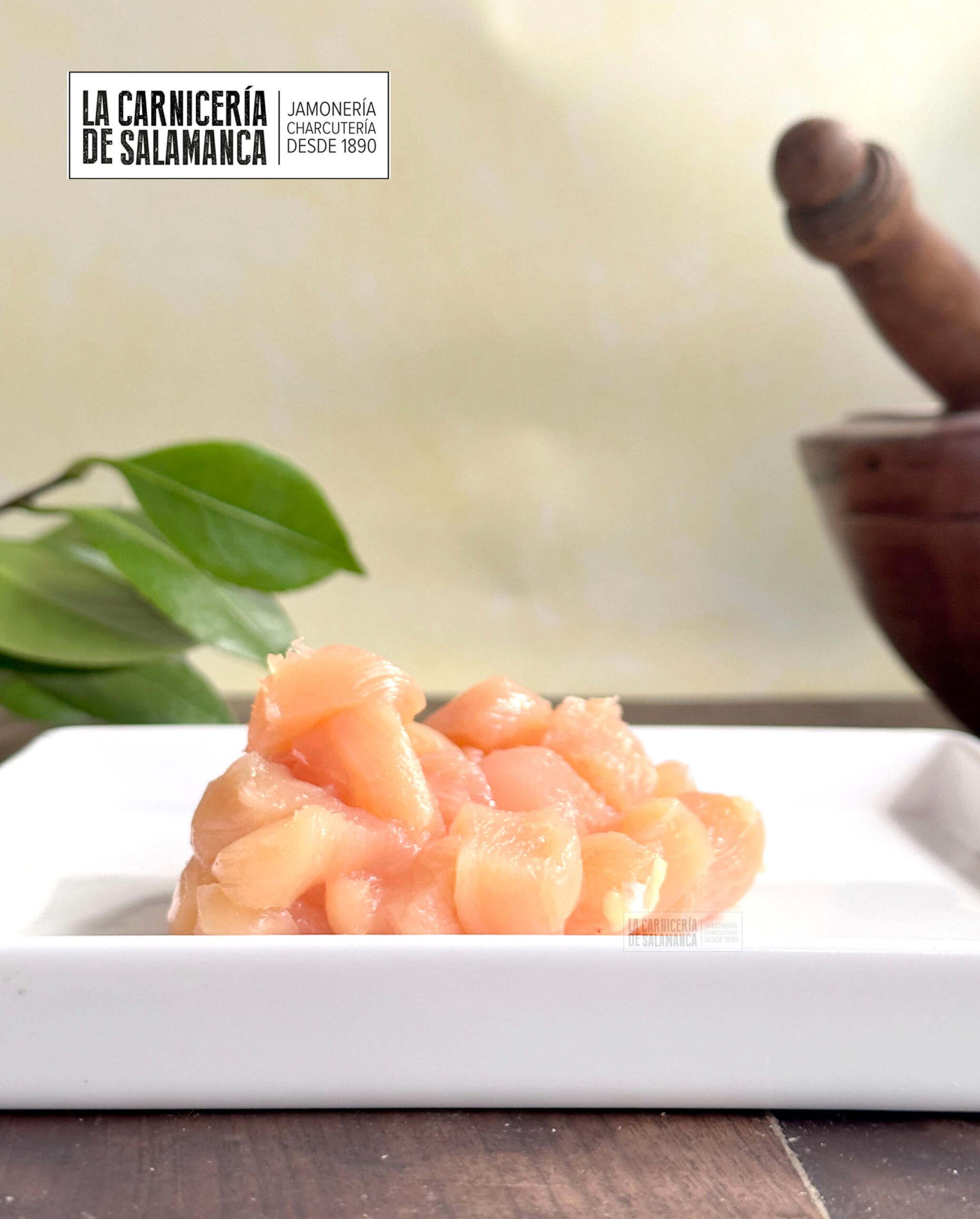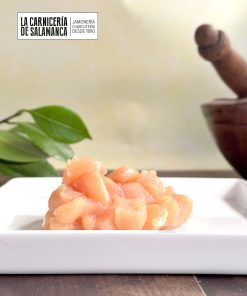 Dados de pechuga de pollo de corral.