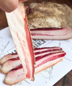 Puedes comprar auténtico guanciale italiano en nuestra carnicería online, hacemos envíos a toda la península, Francia y Portugal.