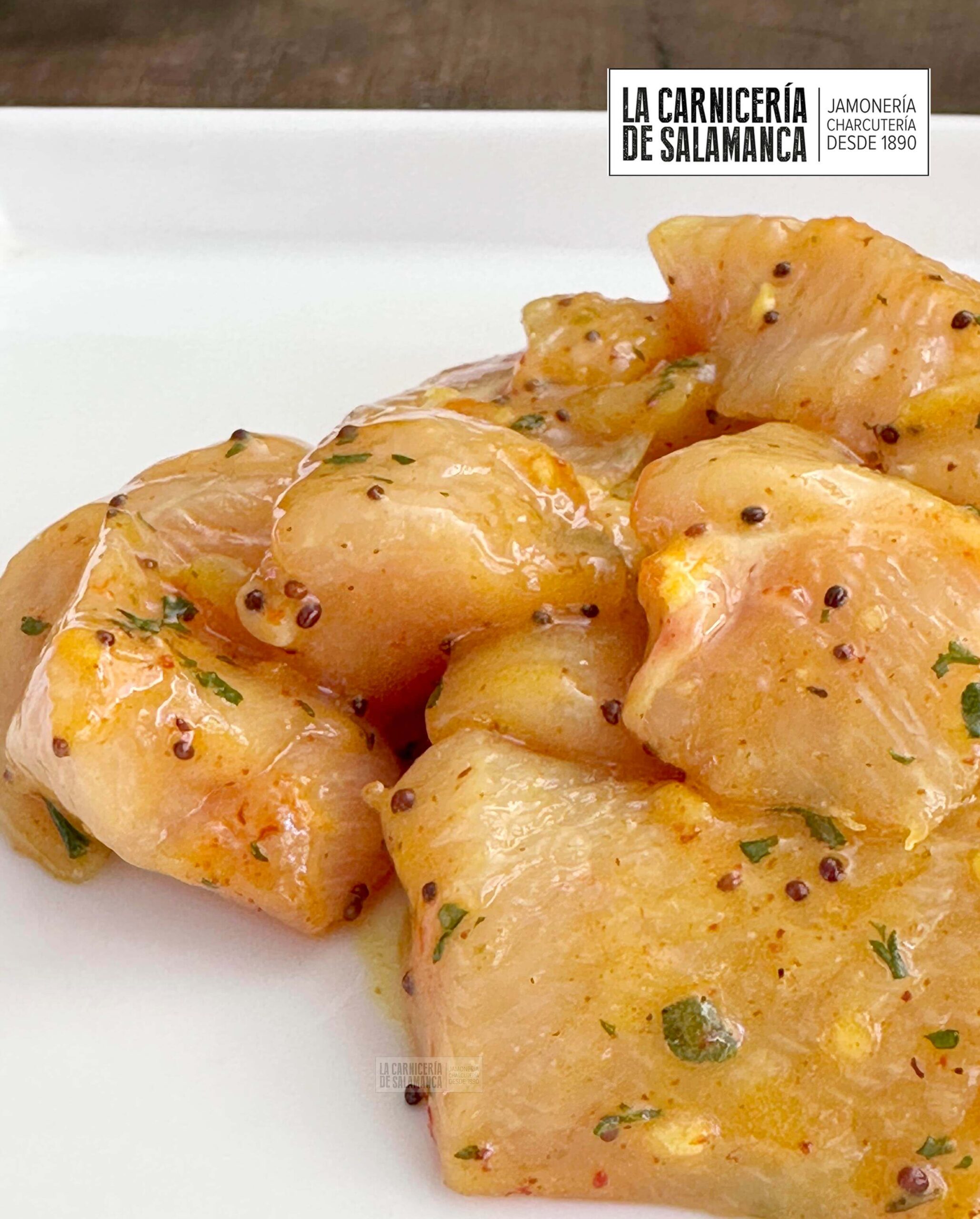 Como los dados de pechuga de pollo ya llevan su propio “adobo” de mostaza y miel, te recomendamos que le eches un poquito de sal (salamos muy poquito, si quieres algo más, puedes añadirlo al gusto) y listo. Puedes prepararlo a la plancha y te quedarán deliciosos.